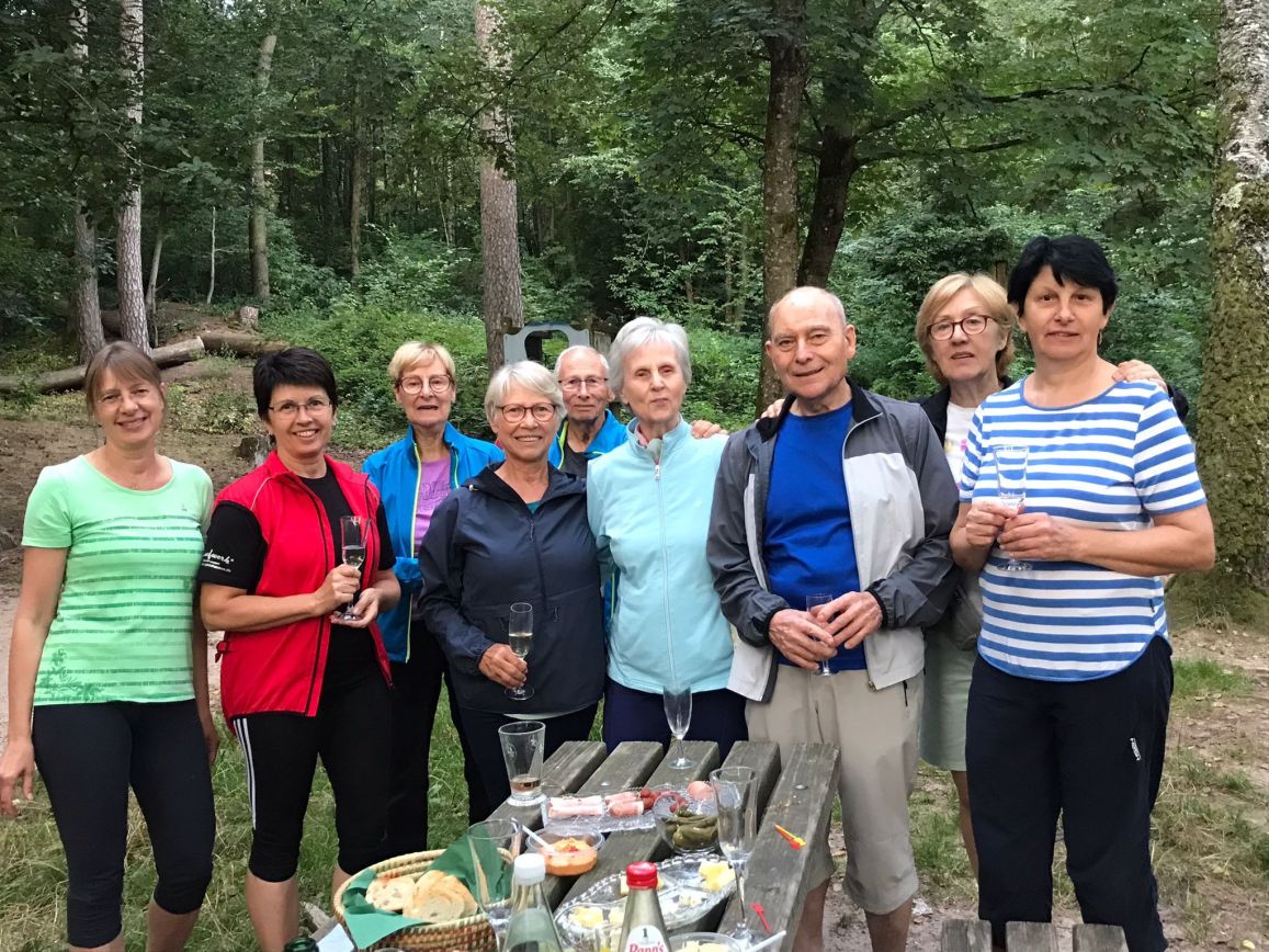 Die Nordic Walking Gruppe mit Gruppenleitering Marianne Müller-Sidow (links)