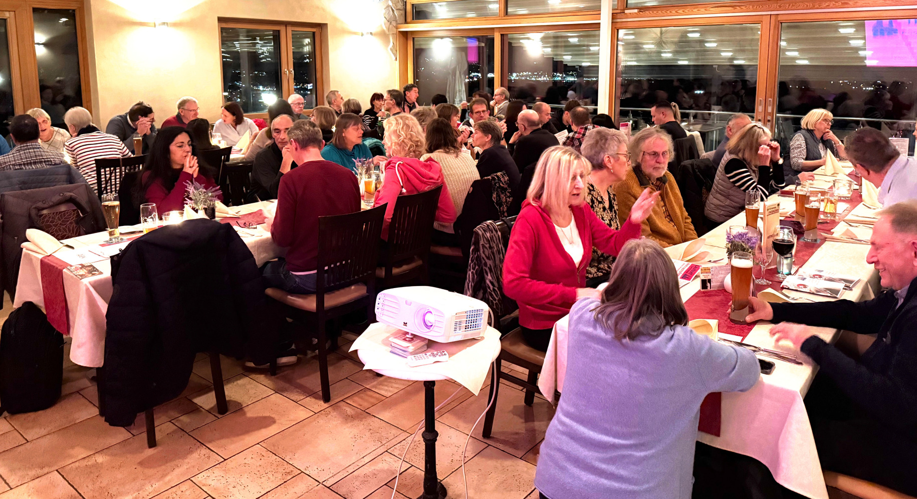 Nach der Essenspause übernahm Gutzeit erneut das Wort. Zunächst gratulierte Gutzeit nochmals Marianne Müller-Sidow zu Ihrem 20. Jährigen Jubiläum als Laufgruppenleiterin der Nordic Walking Gruppe. Diese wurde seinerzeit durch Müller-Sidow ins Leben gerufen und ist ein Motor des Lauftreffs. Weiterhin bedankte sich Gutzeit bei allen Gruppenleiter:innen für Ihre unermüdliche Arbeit und Unterstützung – jeden Mittwoch und Sonntag im Wald, als auch bei allen anderen zuvor genannten Aktivitäten, ob sichtbar oder eher im Hintergrund. Hierzu rief er jede Person einzeln auf und überreichte Badetücher mit dem 50 Jahre Jubiläumslogo des Lauftreff Gelnhausen. Nachdem der offizielle Teil beendet war, gingen die Anwesenden dann in den gemütlichen Teil des Abends über, genossen angeregte Gespräche, bevor der Abend dann langsam ausklang.